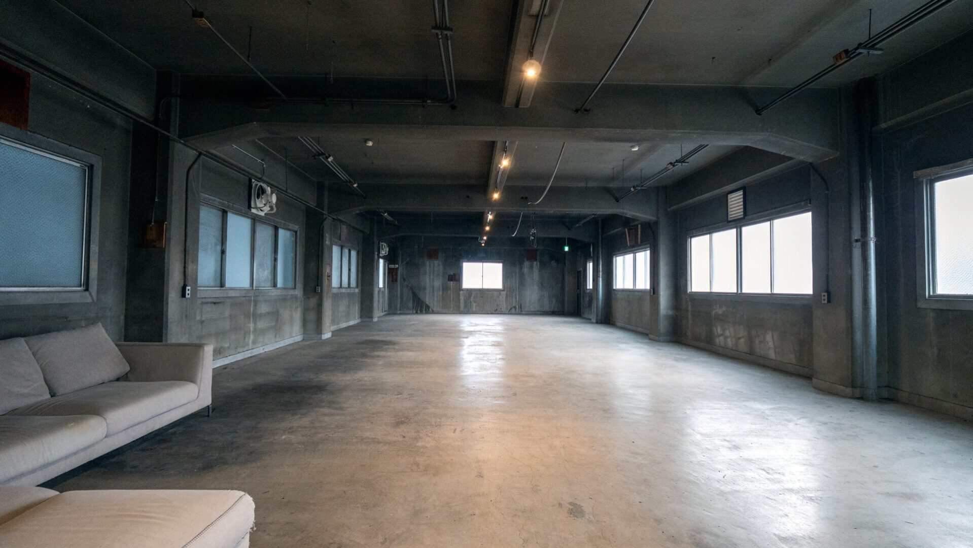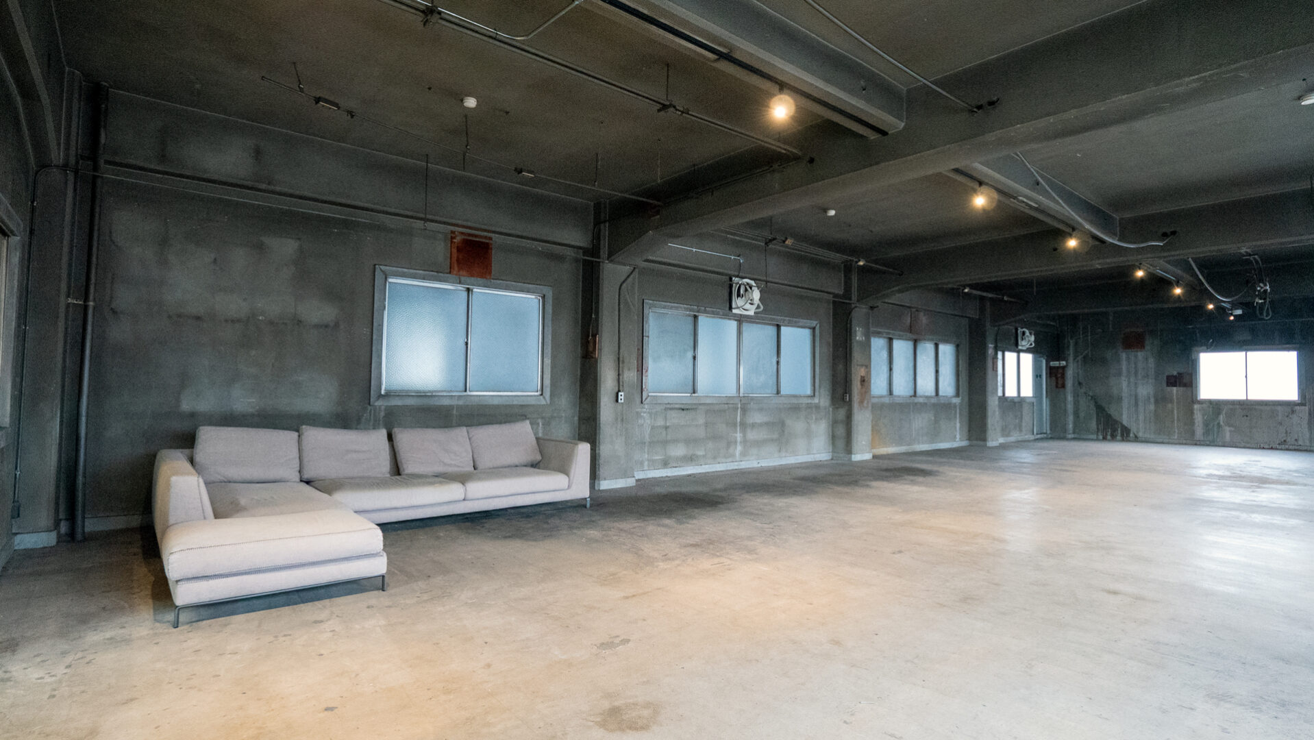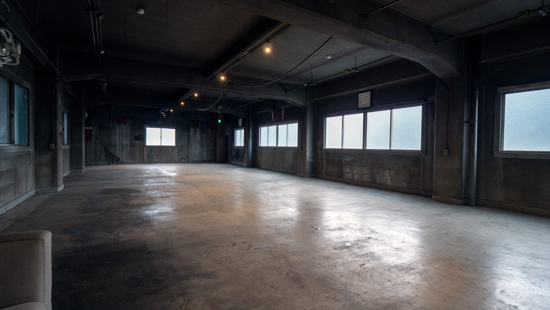 打ちっぱなしのコンクリートと床面のインダストリアルな空間です!期間限定でのレンタルスペースとなります。